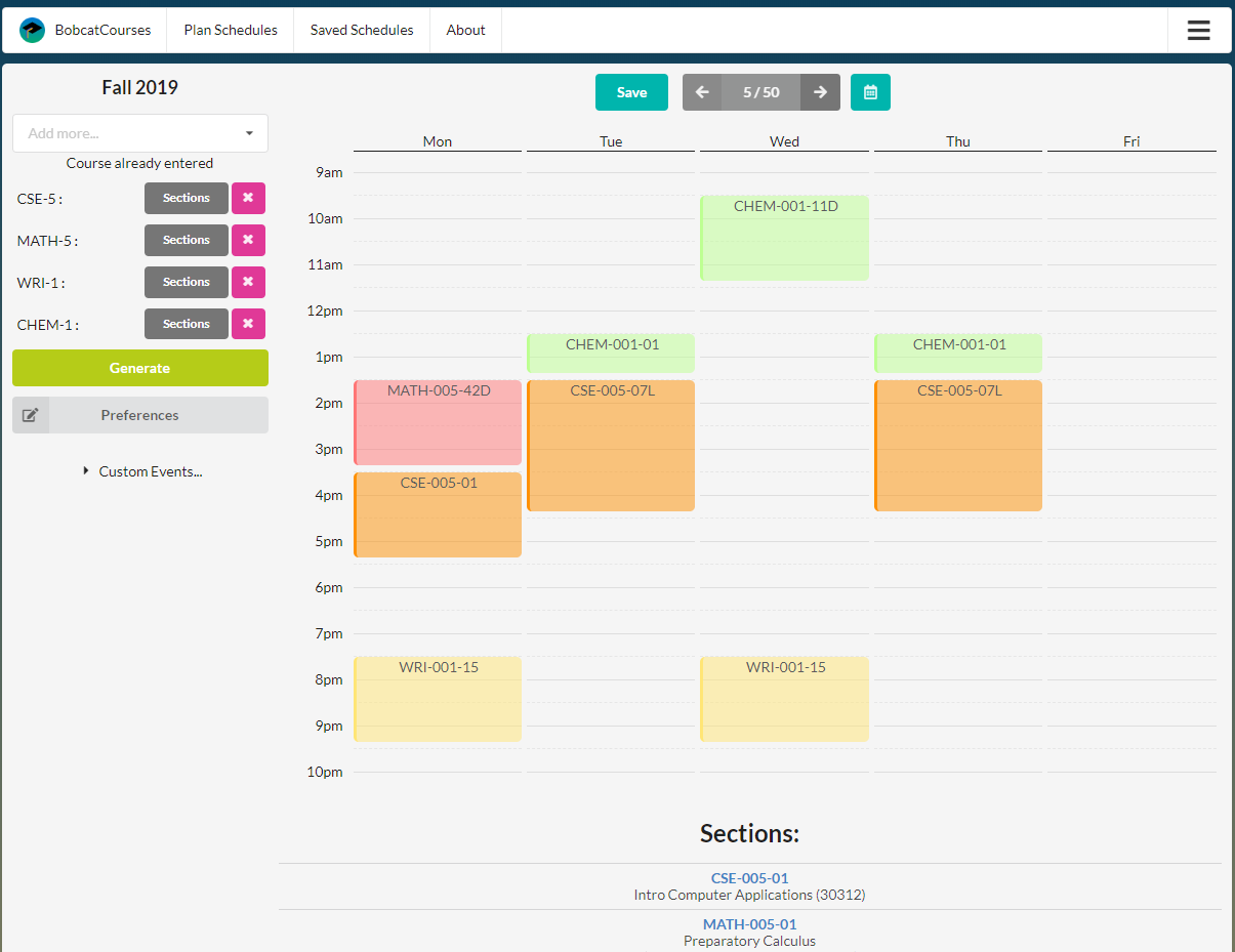 Uses the BobcatCourses BackendAPI for authentication and saving/ loading schedules.