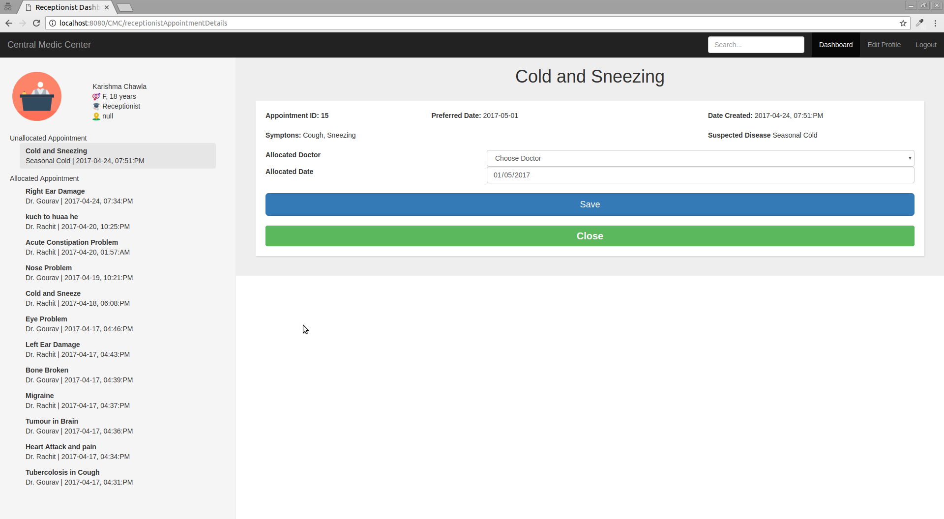 - Receptionist